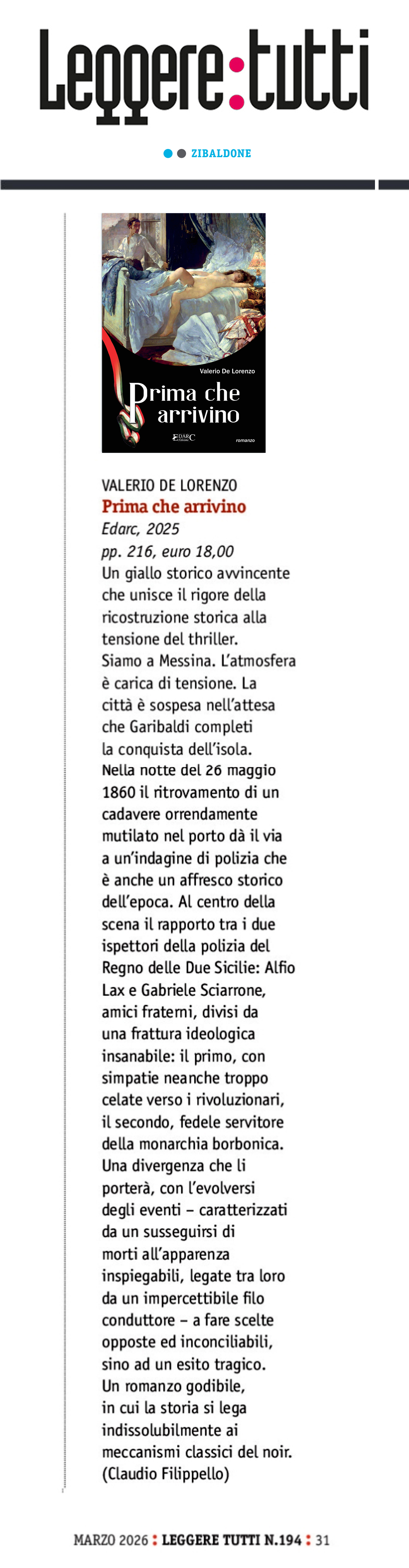 Un giallo storico che non fa sconti: violento, teso, a tratti spietato. Le illusioni politiche e personali dei protagonisti sono raccontate con grande lucidità.
